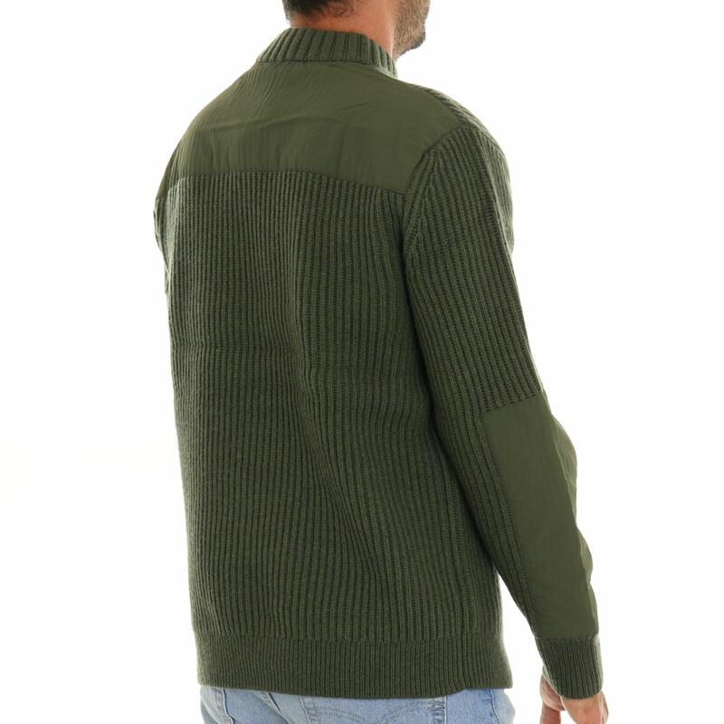 Maglia con collo in piedi, a coste, con inserti in tessuto e bottoni sulla spoalla, logo gommato in tono sulla manica. Vestibilità regular.