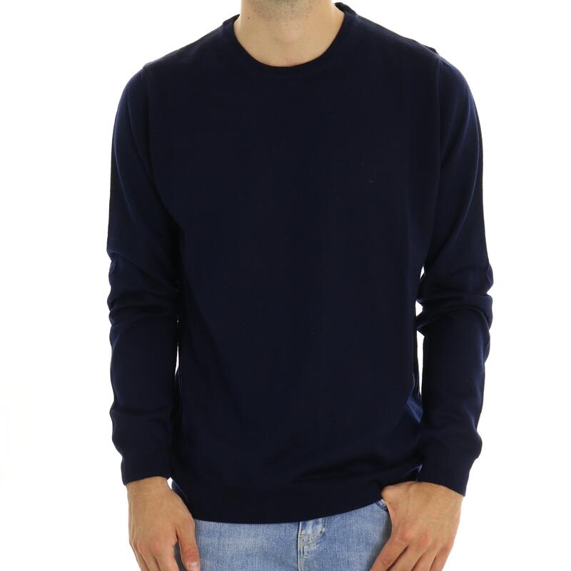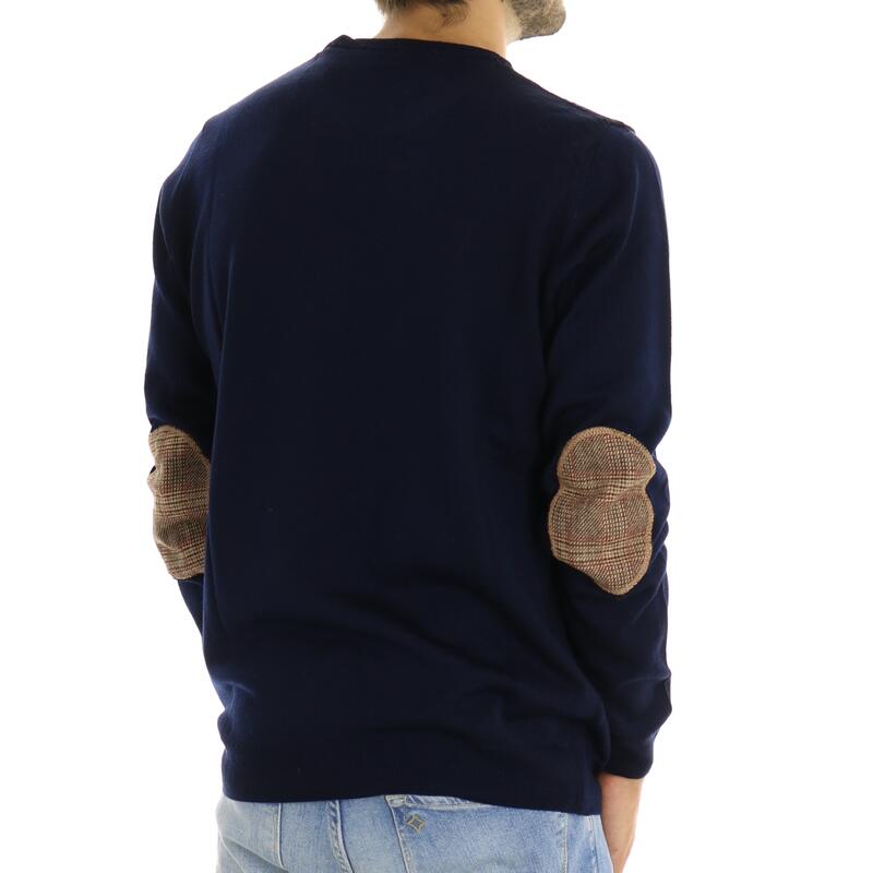 Maglia girocollo, in tinta unita, toppe sui gomiti in fantasia. Vestibilità slim.