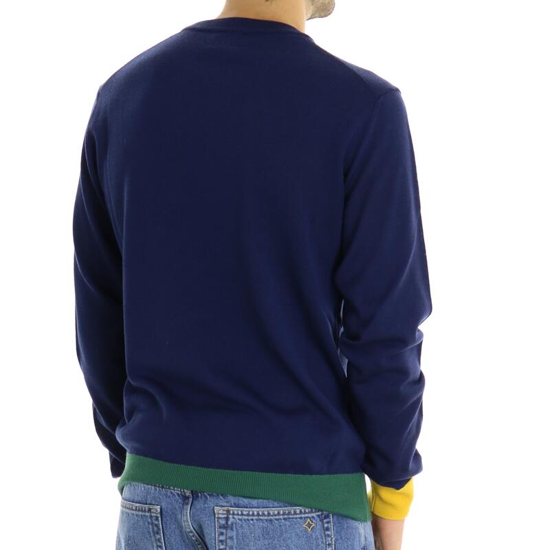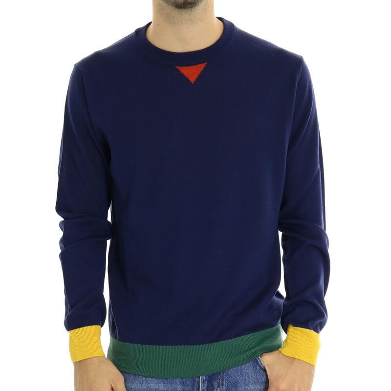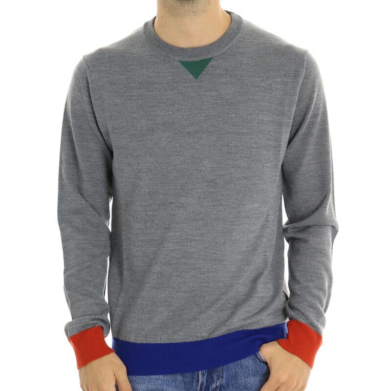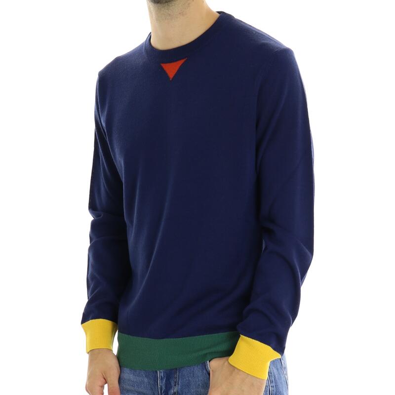 Maglia girocollo, in tinta unita, balza e polsini a contrasto. Vestibilità slim.
