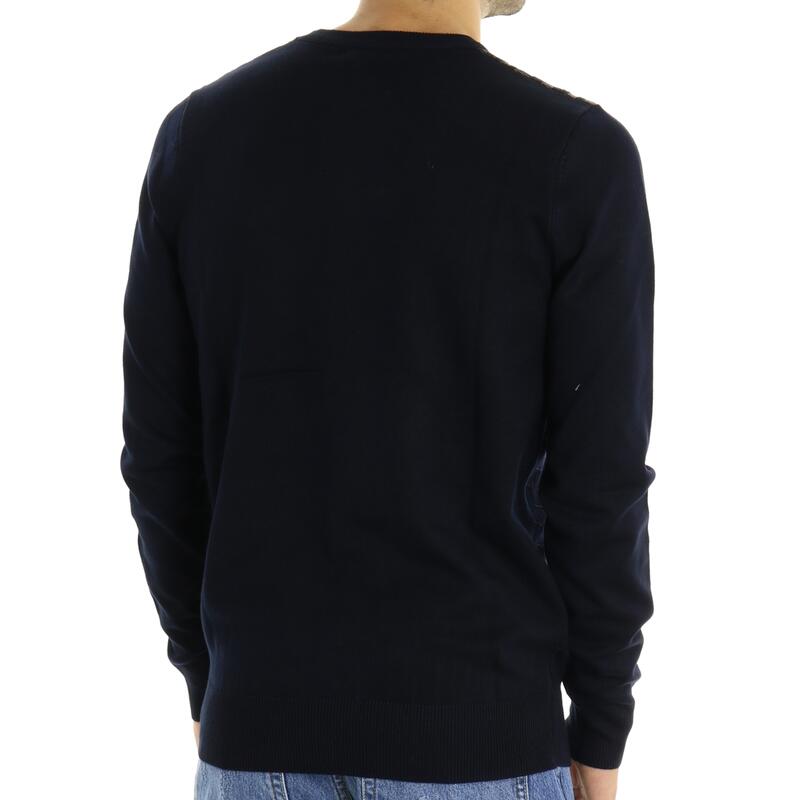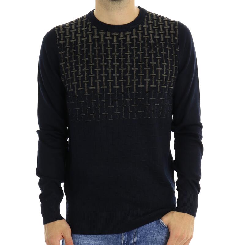 Maglia girocollo, tinta unita, tramatura operata bicolore. Vestibilità slim.