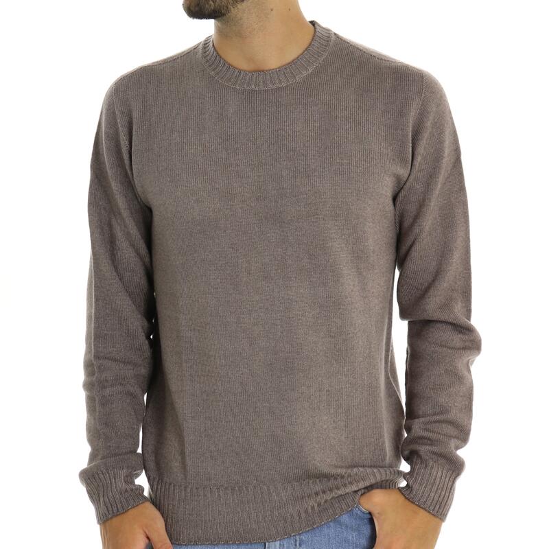 Maglia girocollo, tintura a freddo, polsini e balza in fondo. Vestibilità regular.