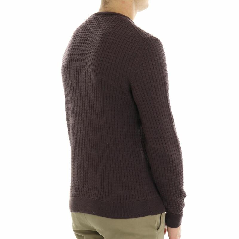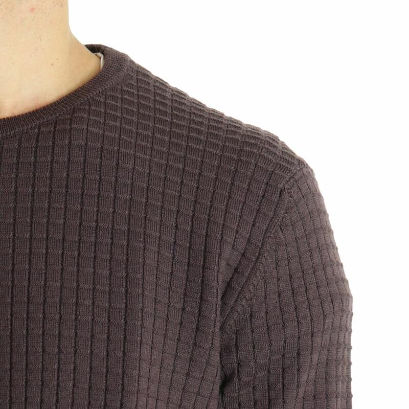 Maglia paricollo, fantasia in rilievo tono su tono, polsini e balza in fondo. Vestibilità slim.
