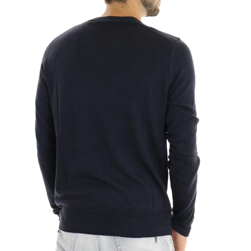 Maglia scollo a V, tintura a freddo, polsini e balza in fondo. Vestibilità slim.