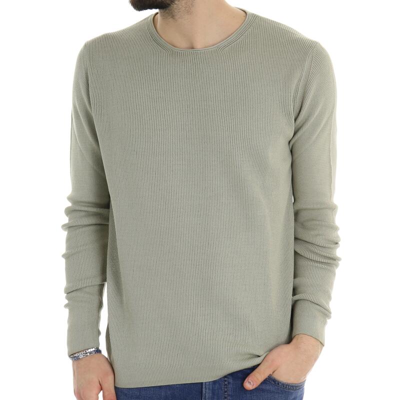 Maglia girocollo, tinta unita effetto slavato tintura a freddo, tramatura a nido d'ape. Vestibilità slim.