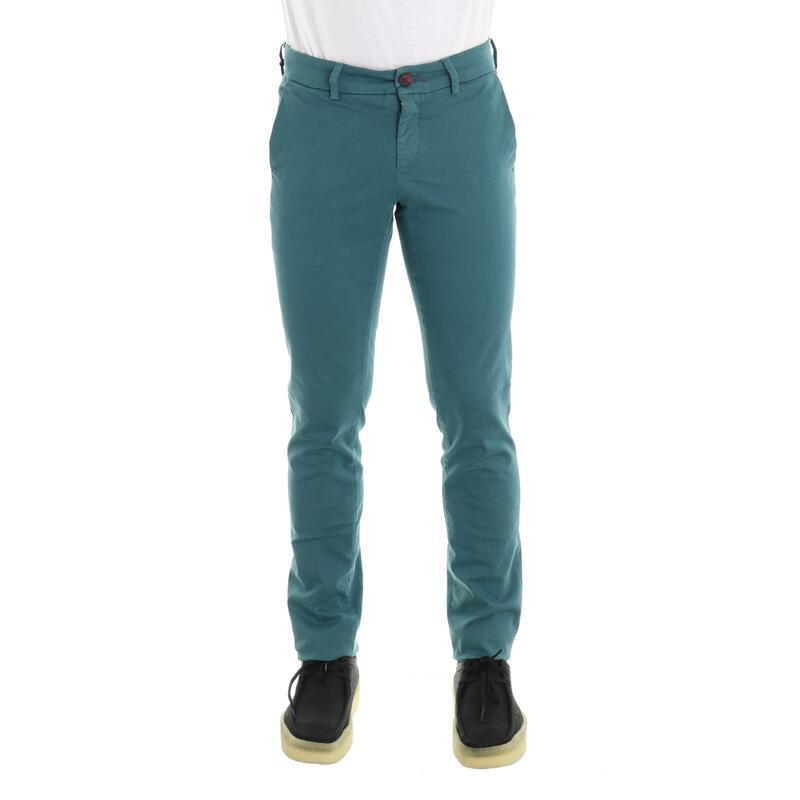 Pantalone in gabardina, tinta unita, vita regular, tasca america , tasche posteriori a filetto, chiusura con bottone e zip. Vestibilità slim