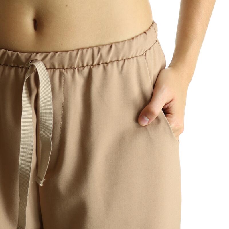 Pantalone morbido, vita alta con coulisse, lunghezza alla caviglia. Vestibilità regular.