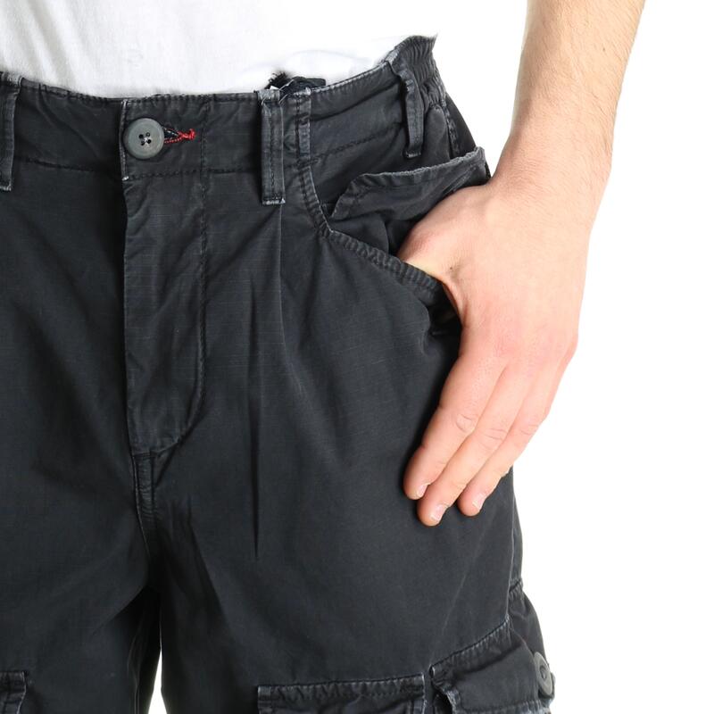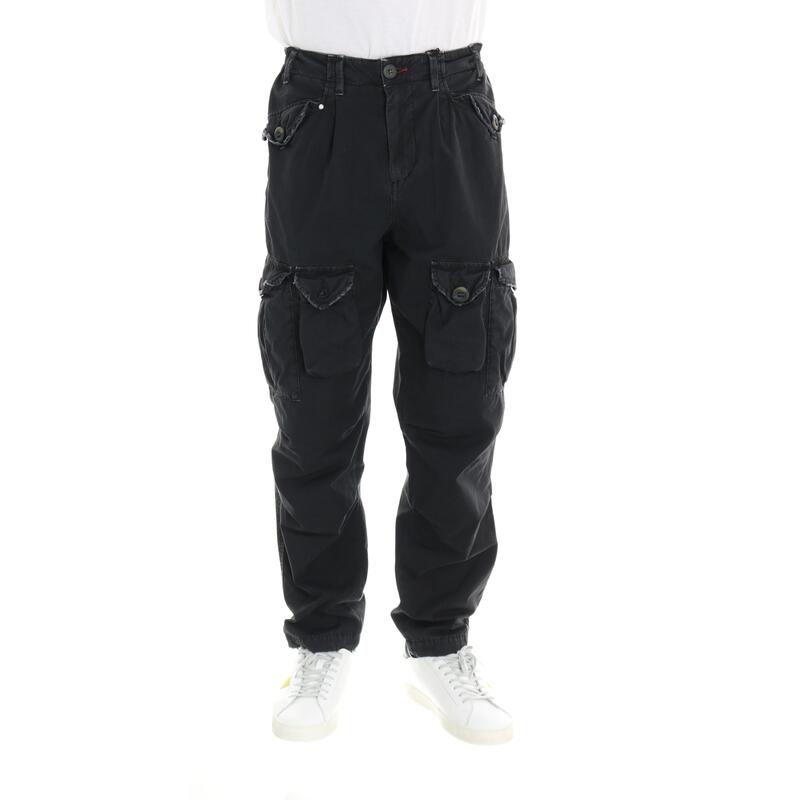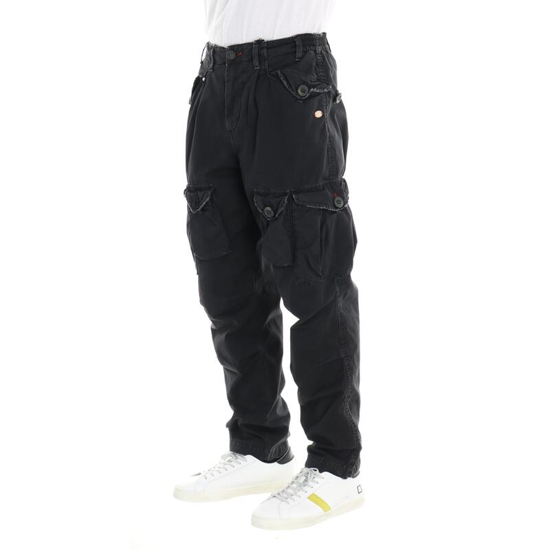 Pantalone con tasche laterali, cavallo calato con pinces. Vestibilità baggy.