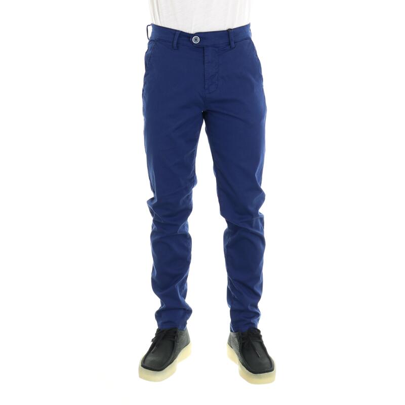 Pantalone modello chino in tessutostretch, tasca america, vita media, chiusura con bottone e zip. Vestibilità slim.