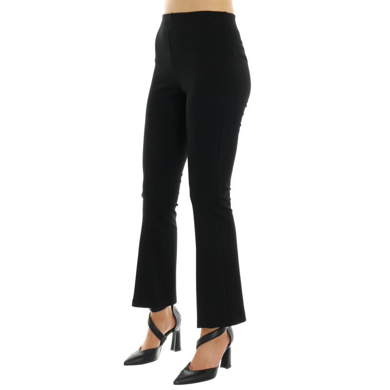 Pantalone stretch, vita alta, elastico in vita. Vestibilità slim.