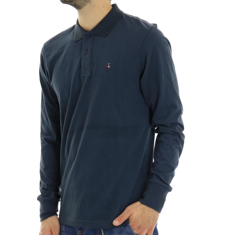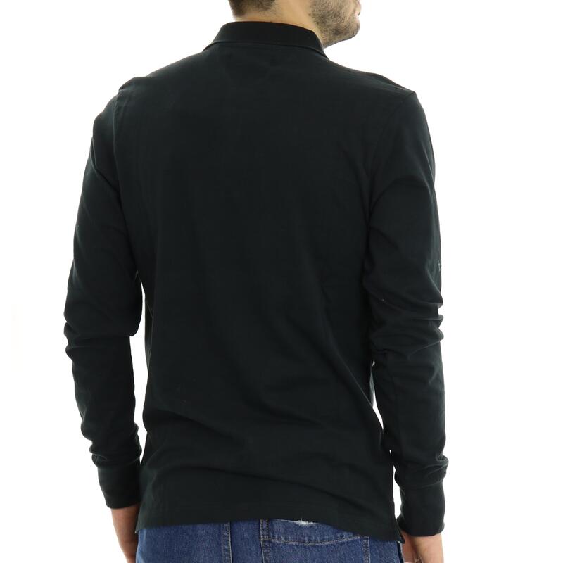 Polo a maniche lunghe, tinta unita, due bottoni e mini ricamo frontale. Vestibilità regular.