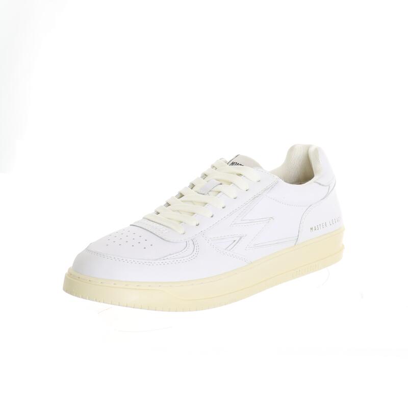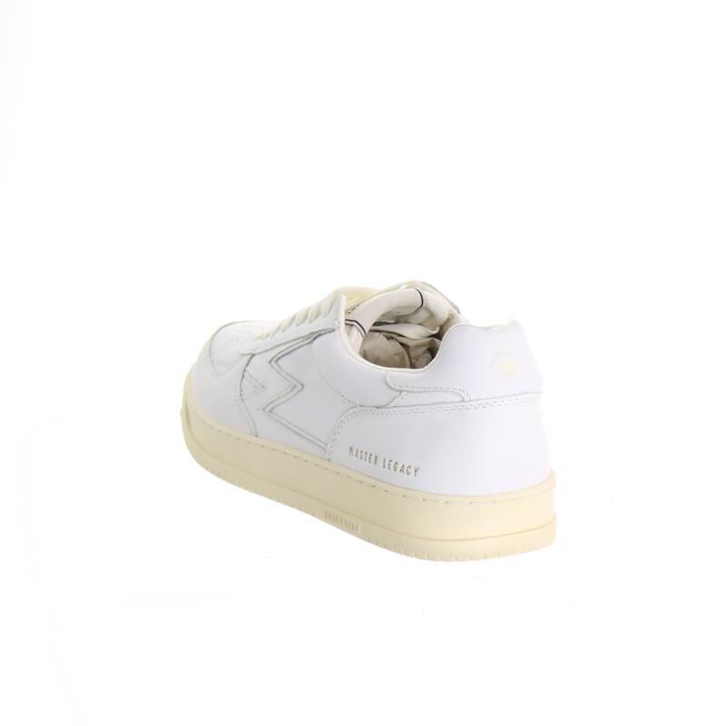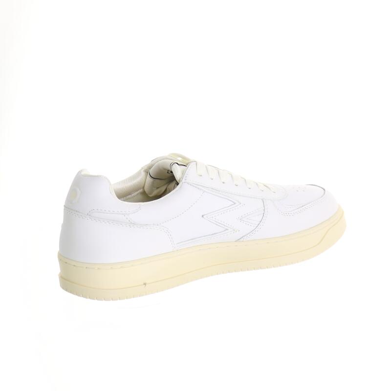 Tomaia in pelle bianca con profili a contrasto, suola off white ,altezza 30mm, linguetta in nylon, backtab in pelle a contrasto , puntale con foratura con rinforzo, fodera in pelle e tessuto off white, soletto in pelle off white customizzato. Calzata regolare.