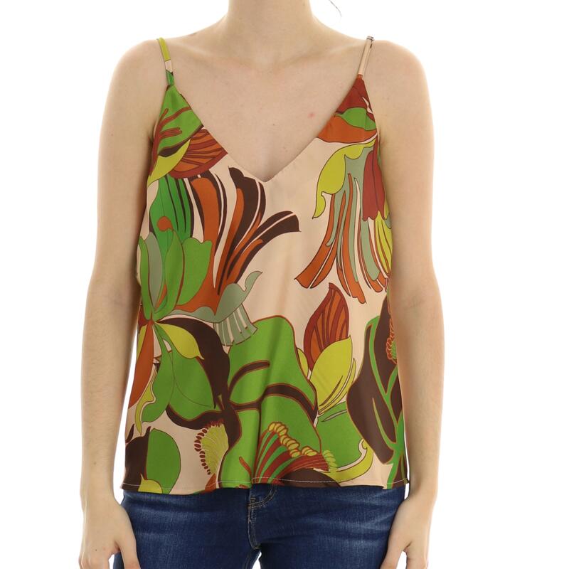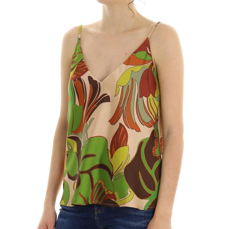 Top con spallino fine regolabile, scollo a V, in fantasia. Vestibilità regular.