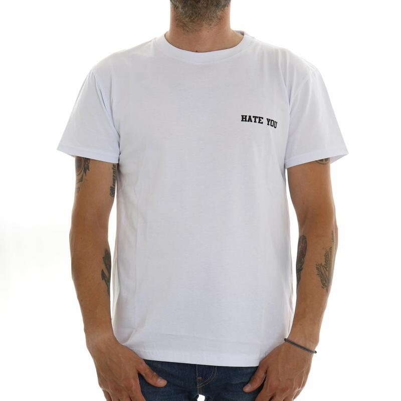 T-shirt mezza manica girocollo, tinta unita, maxi stampa sulla schiena. Vestibilità regular.