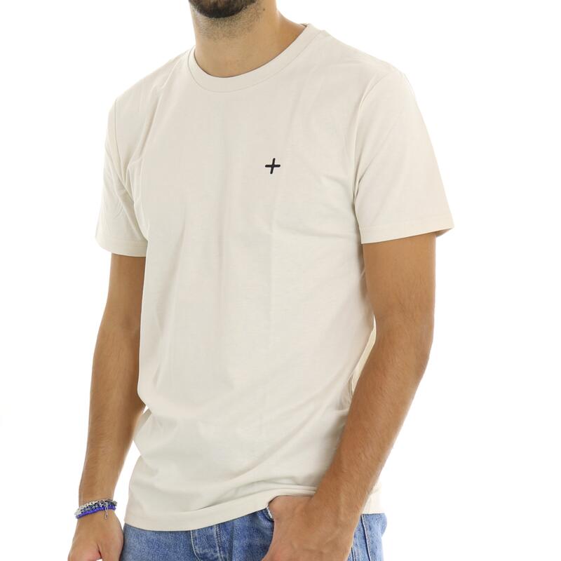 T-shirt mezza manica, girocollo, tinta unita, maxi stampa dietro. Vestibilità regular.