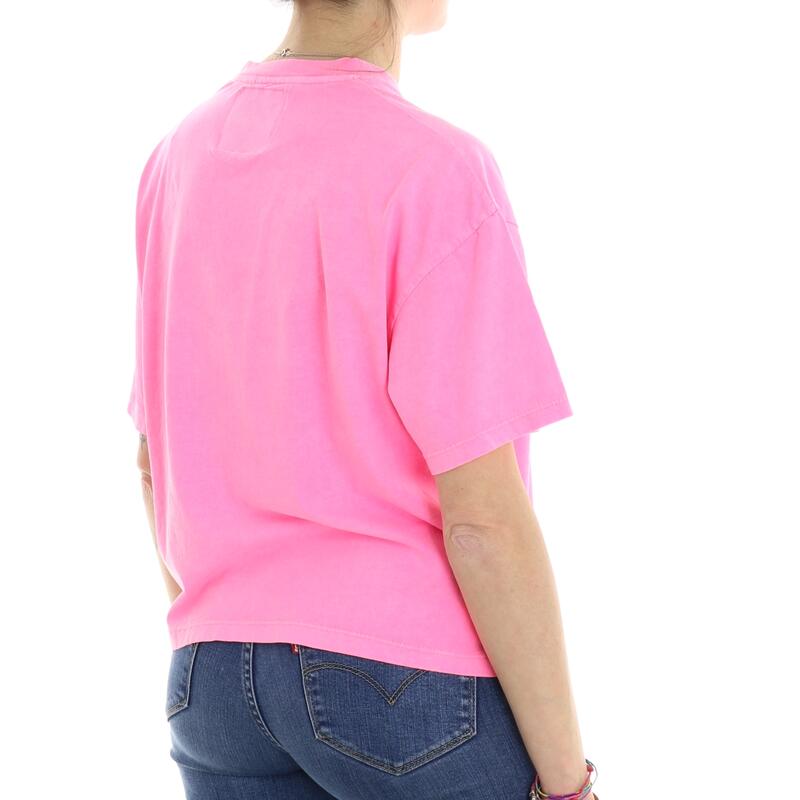 T-shirt mezza manica, girocollo, logo frontale, effetto vintage. Vestibilità regular crop.