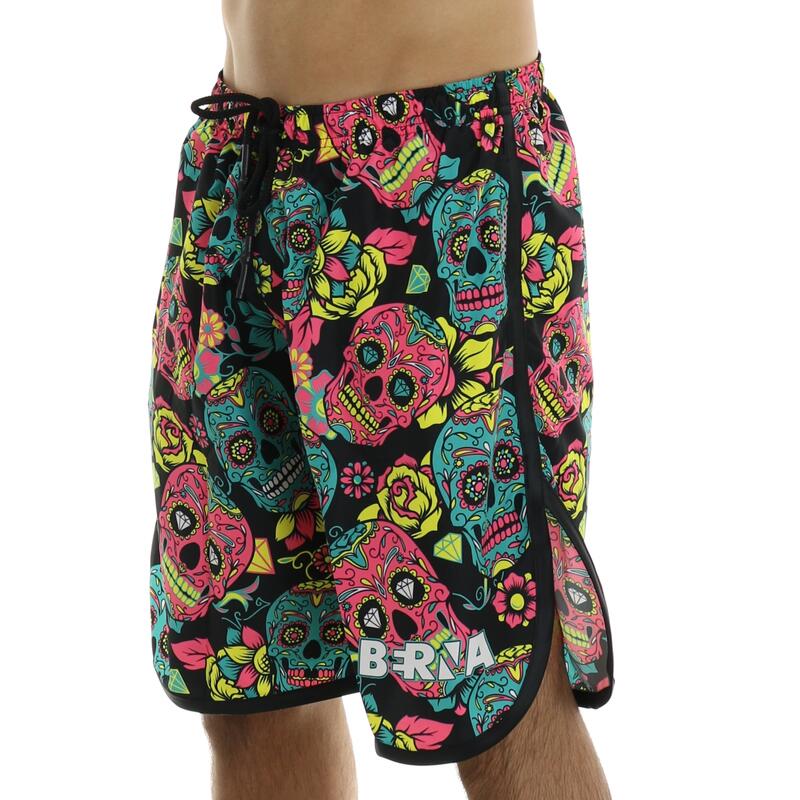 Shorts mare in fantasia, vita elasticizzata con coulisse esterna, tasche laterali a filetto foderate in mesh. Vestibilità regular.
