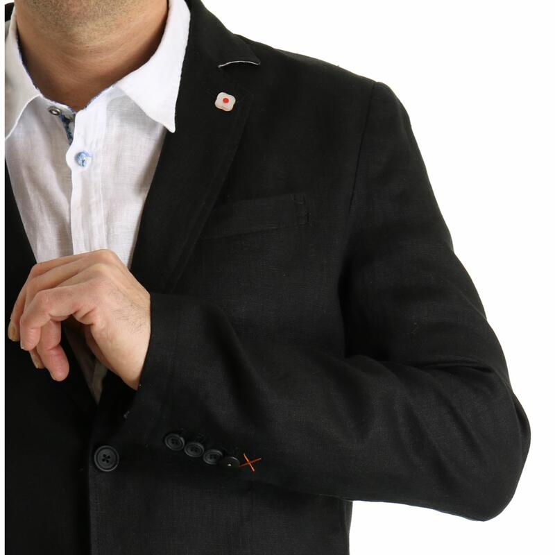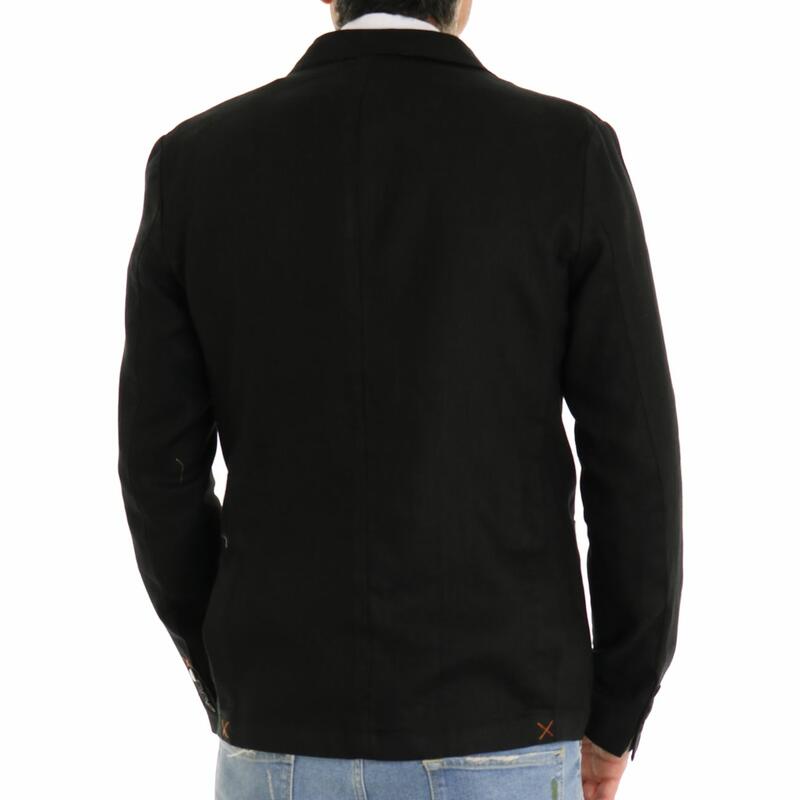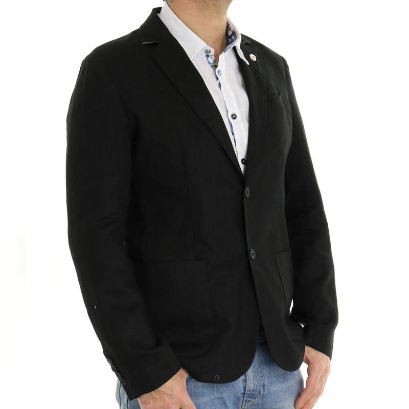 Giacca due bottoni sfoderata con rever classico, tasche a toppa e taschino a barchetta, due spacchi. Vestibilità regular.