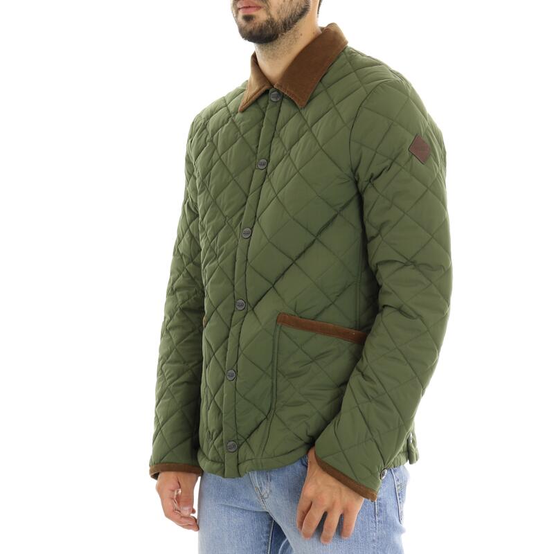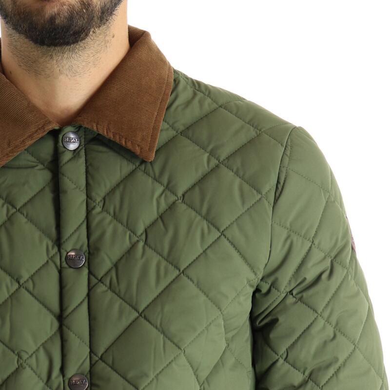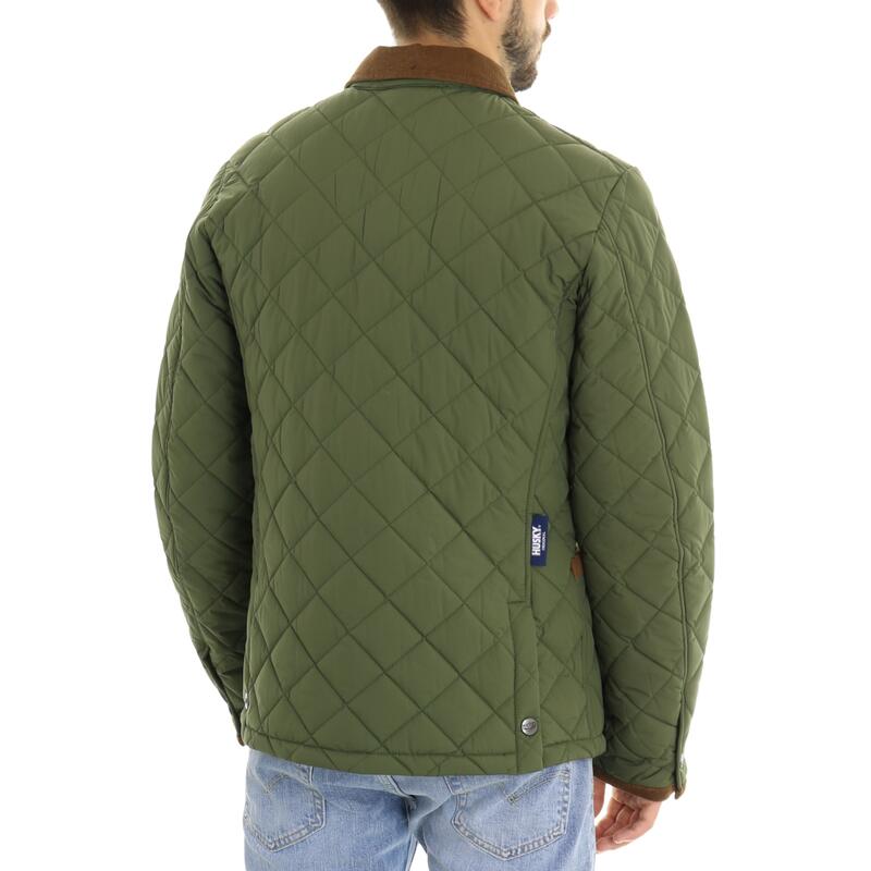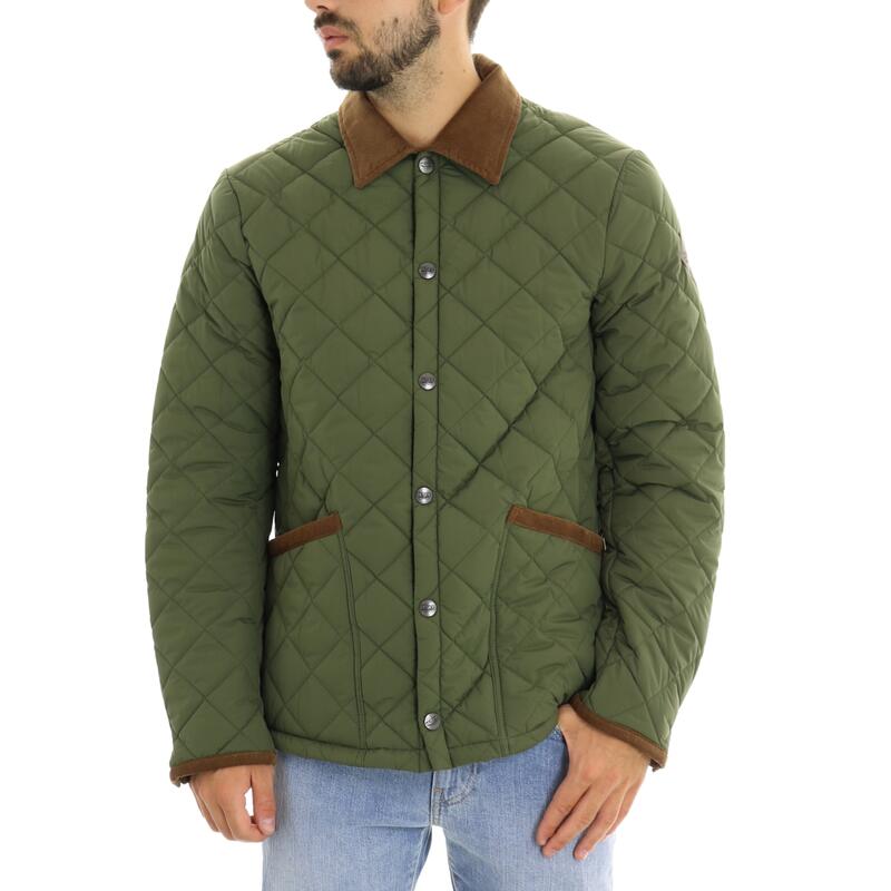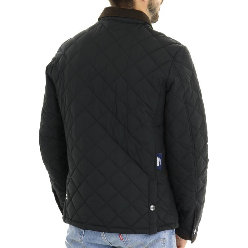 Giubbotto trapuntato, bottoni automatici, finiture a contrasto in velluto, con tasche. Vestibilità slim.