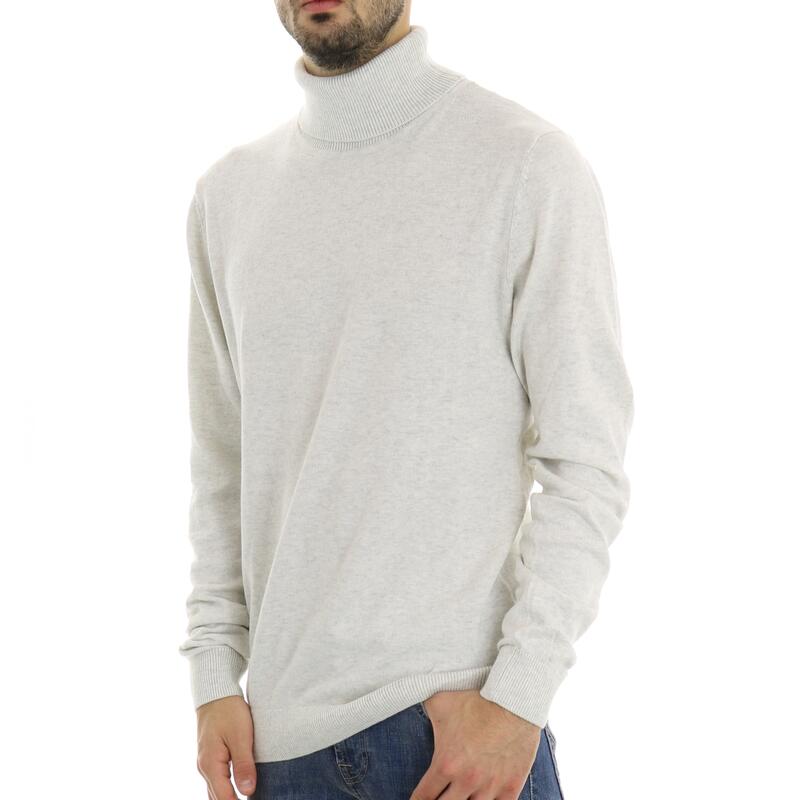 Maglia a collo alto, tinta unita, polsini e balza in fondo. Vestibilità slim.