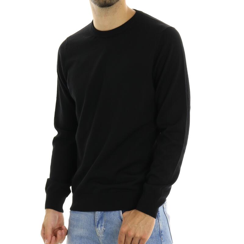 Maglia girocollo, tinta unita, con polsini e balza in fondo. Vestibilità regular.