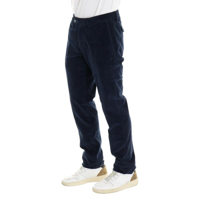 Pantalone chino in velluto, vita media, tasche america, chiusura con bottone e zip. Vestibilità slim.