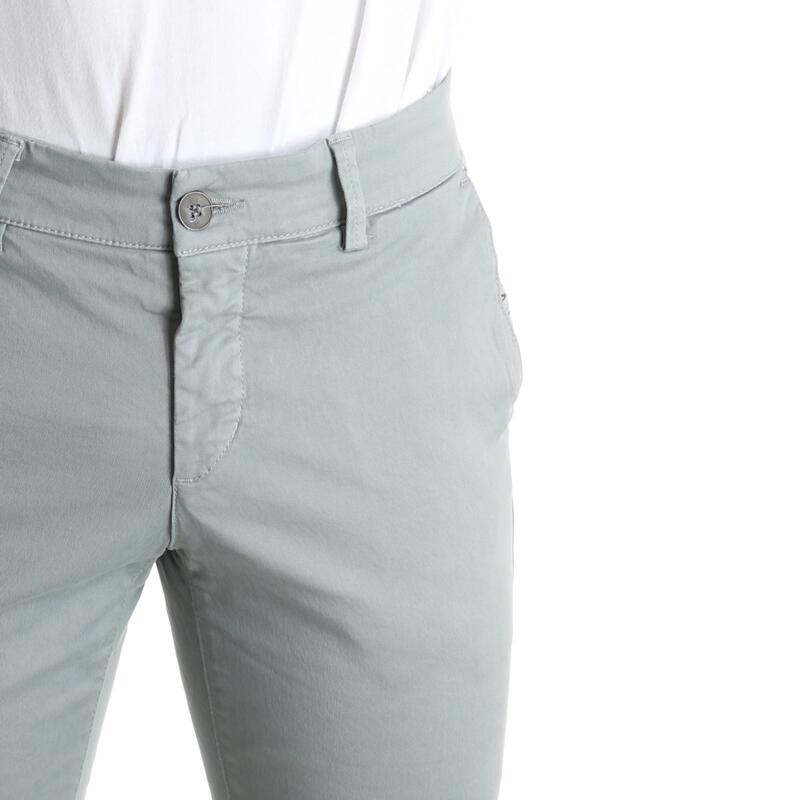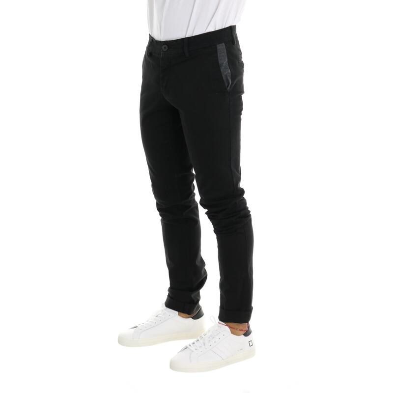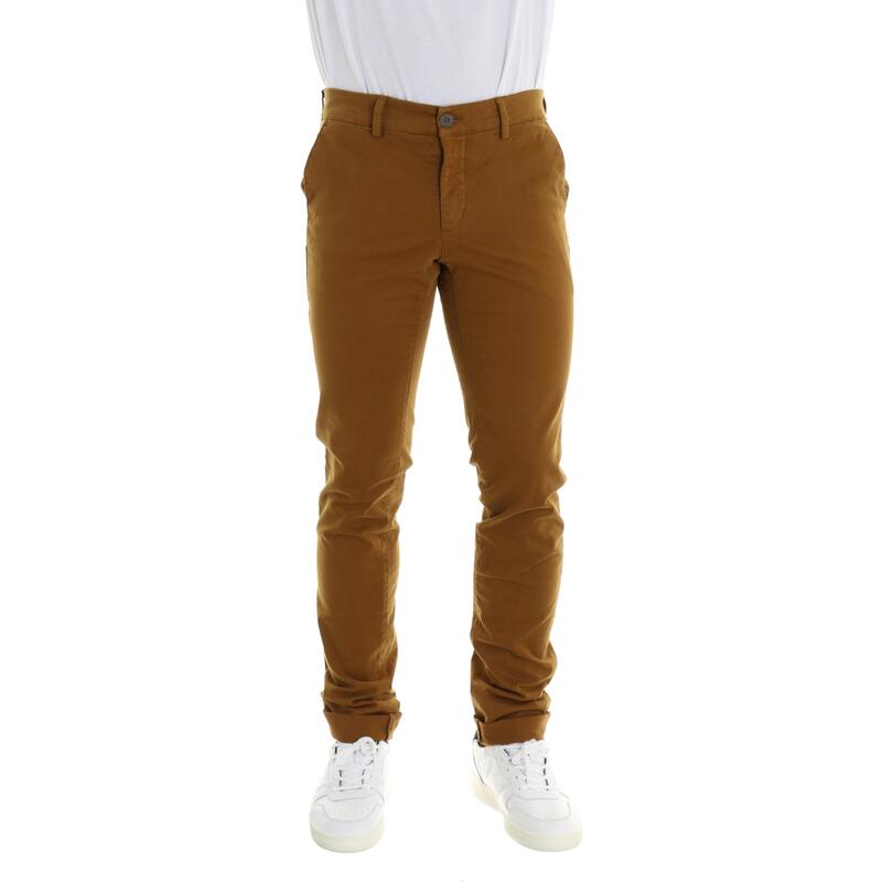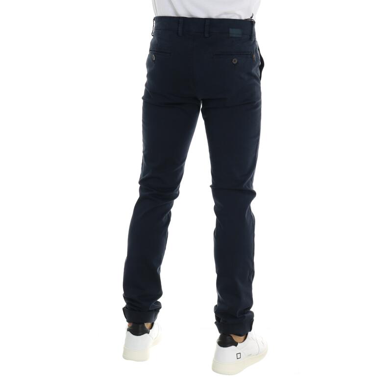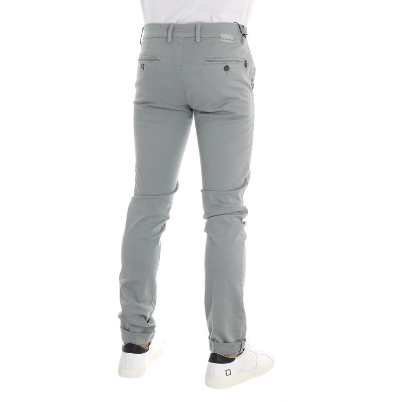 Pantalone in gabardina, tinta unita, vita regular, tasca america parlata con fantasia a contrasto, tasche posteriori a filetto, chiusura con bottone e zip. Vestibilità slim.