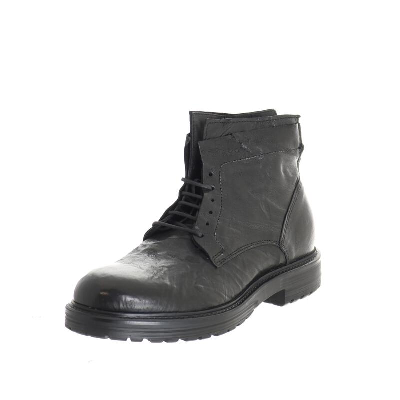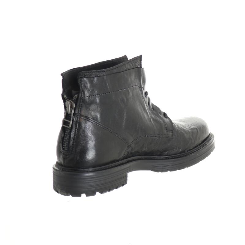 Stivaletto in pelle con suola in gomma effetto cuoio antiscivolo, zip dietro, calzata abbondante.