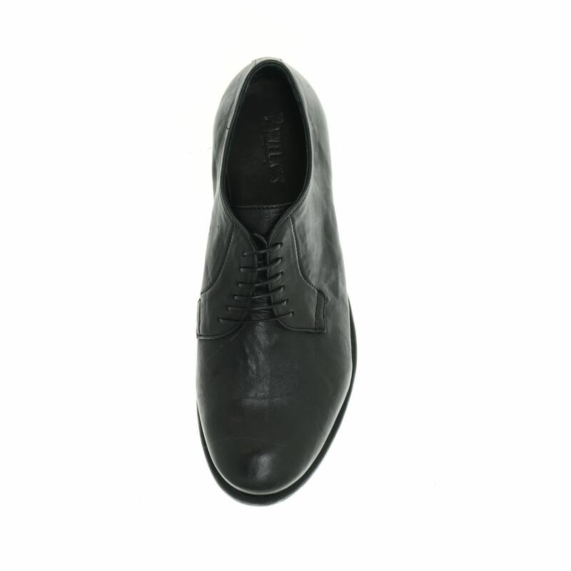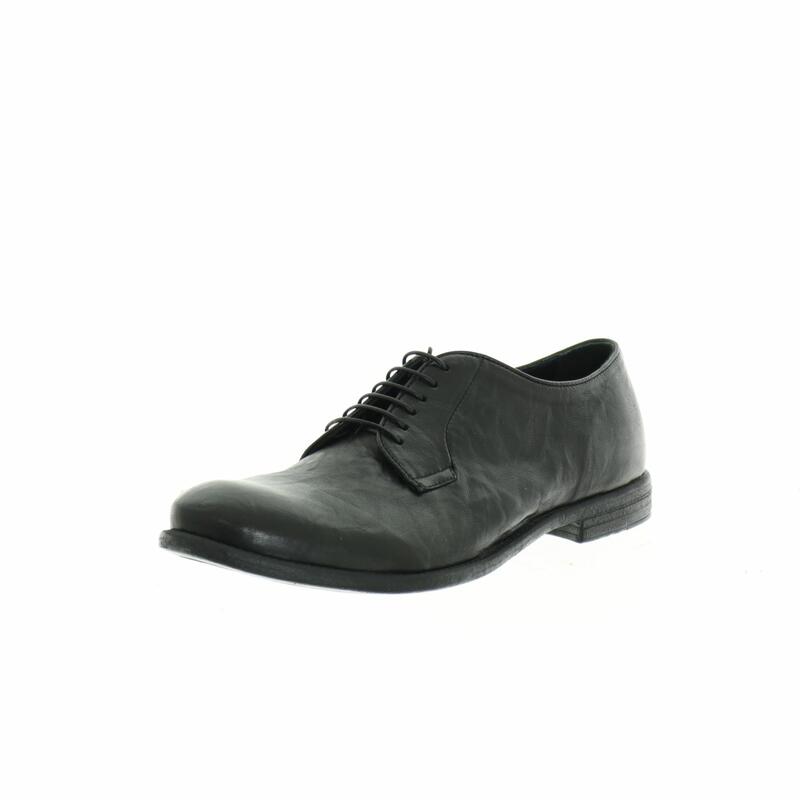 Scarpa stringata in pelle con suola in gomma effetto cuoio antiscivolo, calzata abbondante.