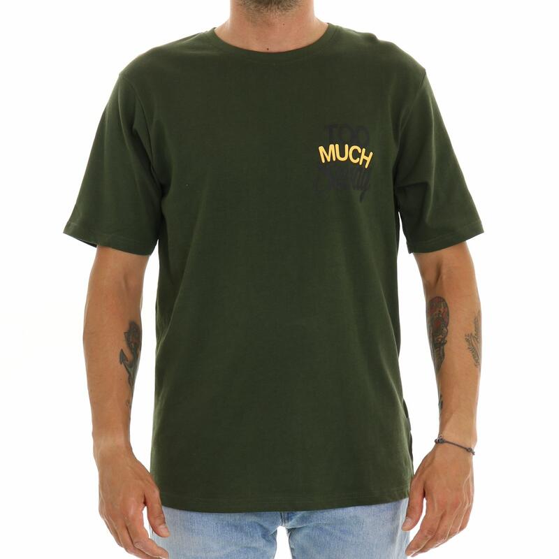 T-shirt mezza manica girocollo, tinta unita, con stampa frontale e dettagli fluo. Vestibilità regular.